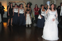So Sandy and Robert won the garter and bouquet toss and Robert had to do his sexy dance over to Sandy to the song "Let's Get it On." I stuck a dollar bill down his shirt, which I thought was funny. But not nearly as funny as the nosey little girl who snuck over to watch Robert grinding on Sandy! After Ryan carried a confused Caity safely back to my father we continued with the garter.